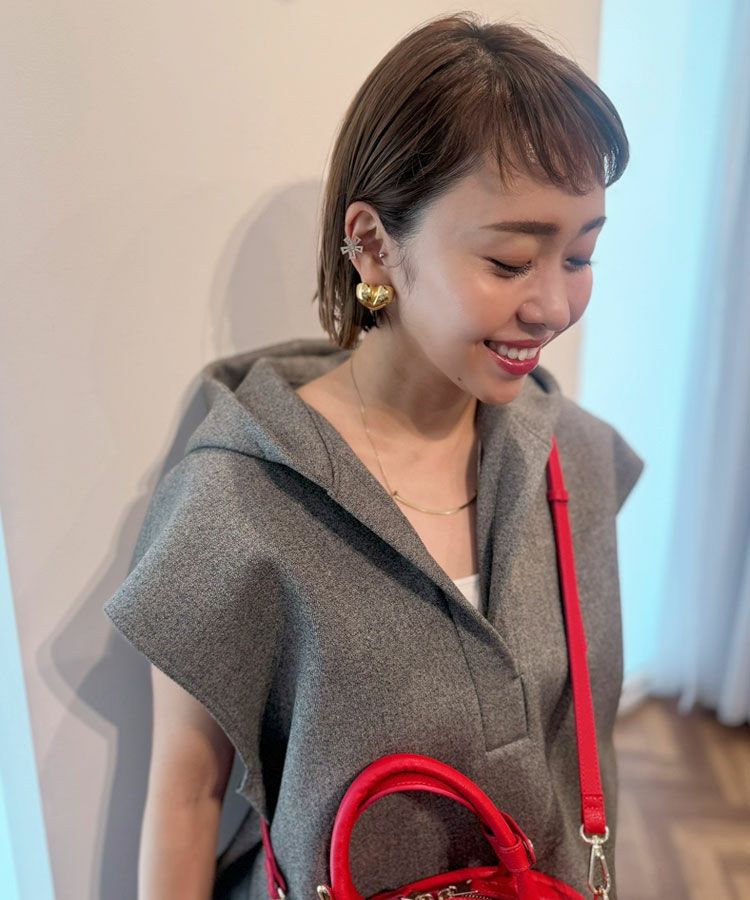 ハートのピアスは持ってなかったのですが、かおりさんが付けてるの見て、あまりブリブリな感じでもなく可愛かったので購入しました^ ^ 思ってたより全然付けやすく可愛いです♡