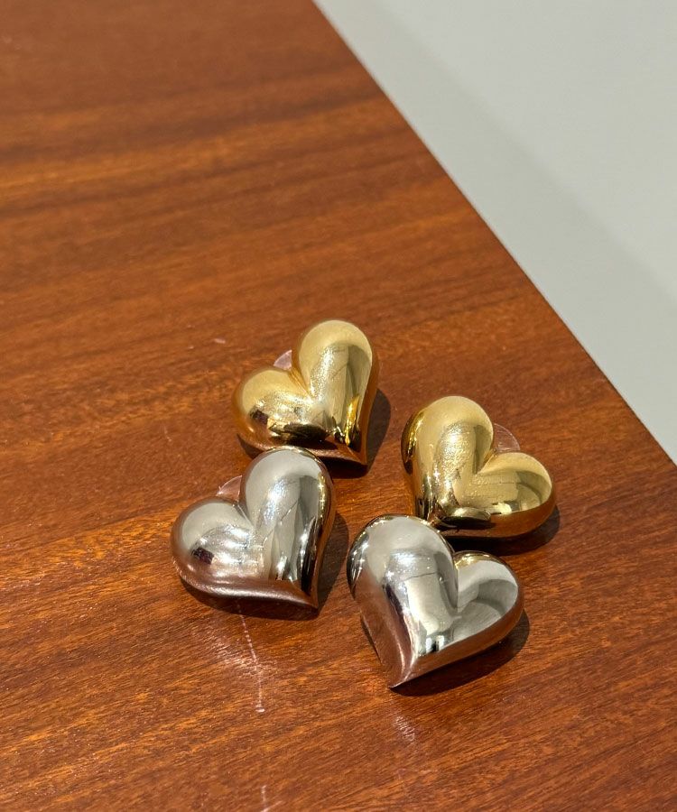 シルバー購入しました。シンプルなコーデの日でも存在感のあるぷっくりハートピアスで華やかになります。めちゃくちゃ可愛いです。