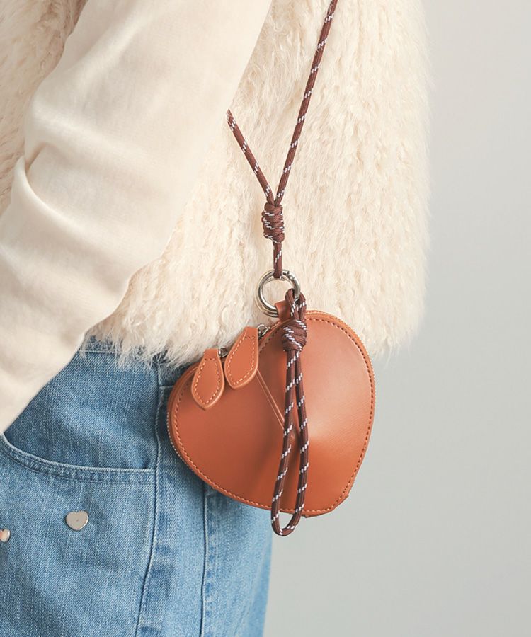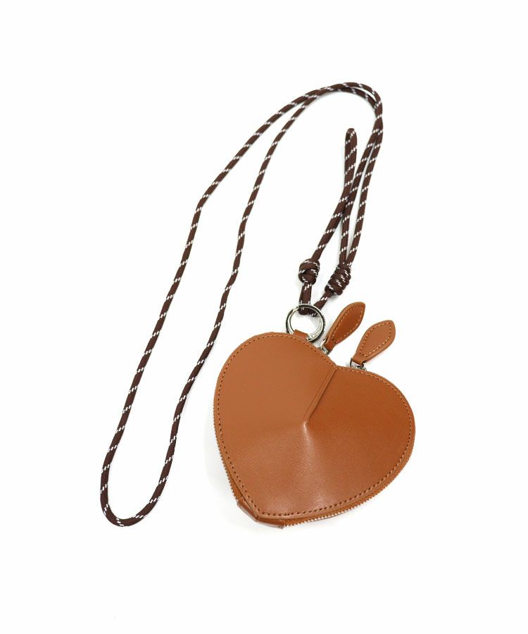高級感のあるリアルレザーを使用したハートモチーフのミニポーチ。