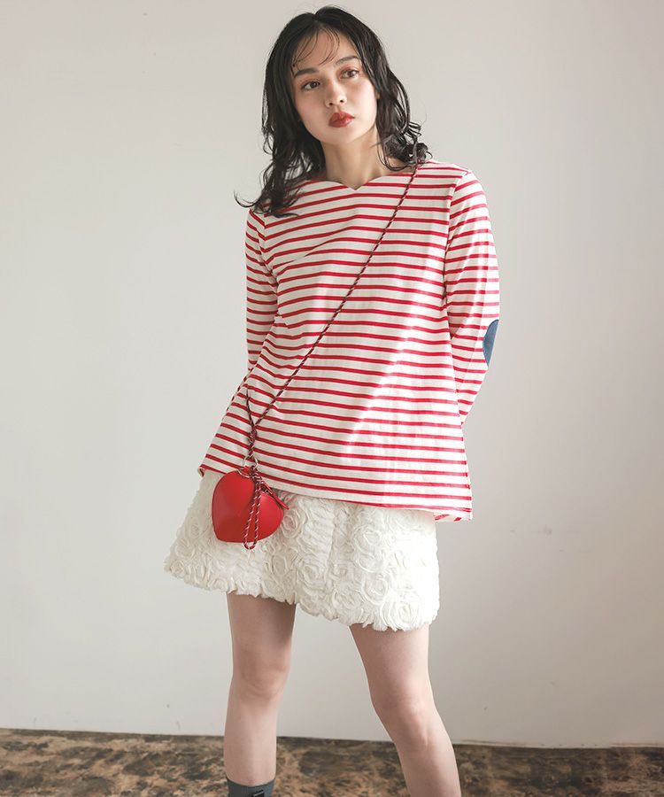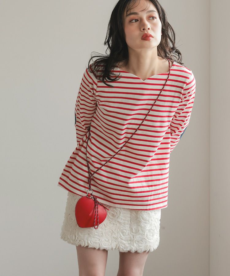 ハートネックボーダートップス メール便