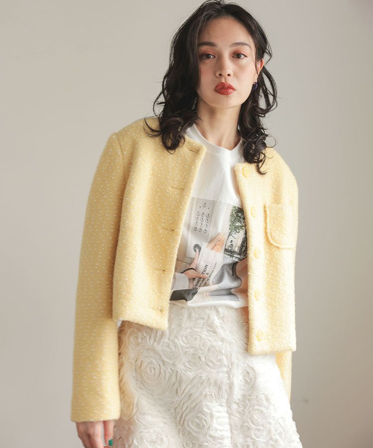 スカートにもパンツにも合わせやすく、ボディラインを拾いにくいサイズ感。