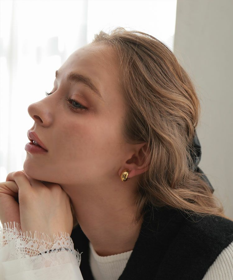 耳元にさりげない存在感を添える、ドロップフォルムのイヤリング。