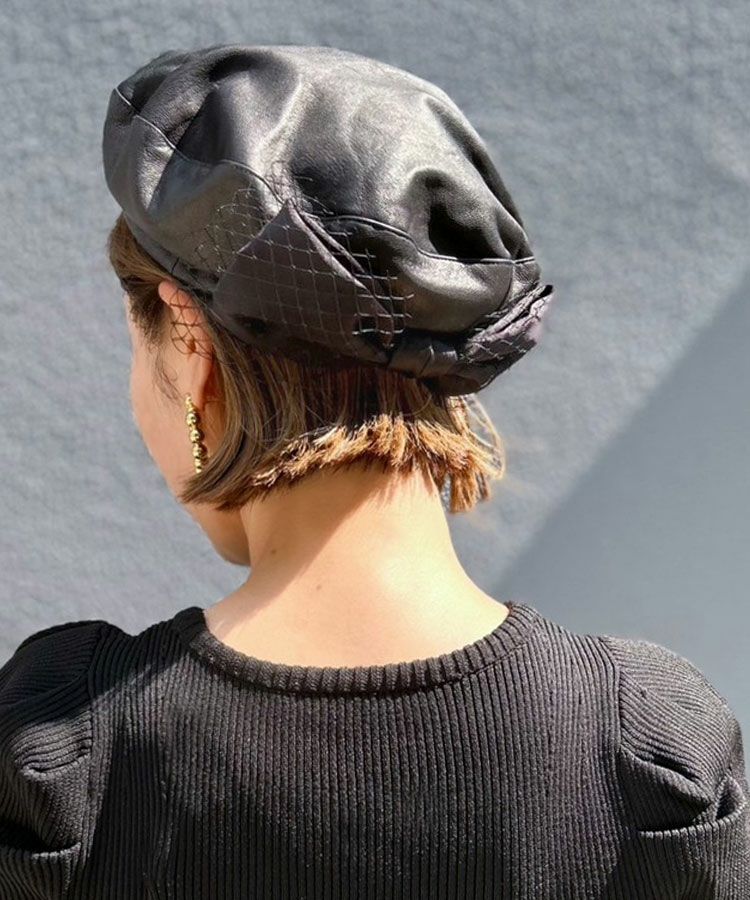 リボンレザーベレー帽 [C]