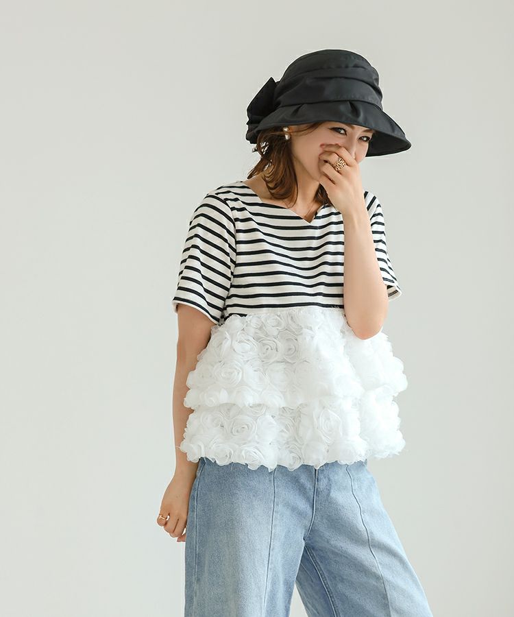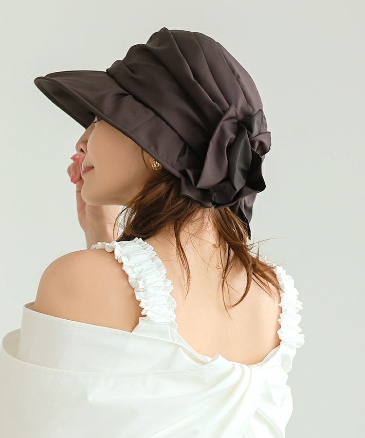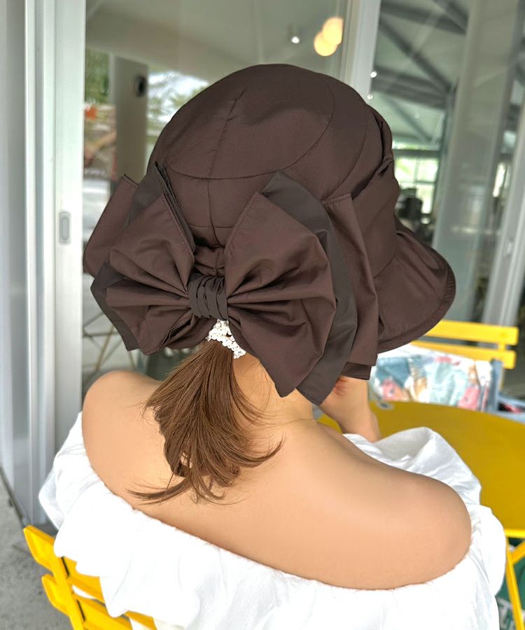 前回、大好評いただいたハットと同様にバックシルエットのポイントのリボンは3層にすることで、どの角度から見ても立体感が出るよう大人可愛く仕立てました。