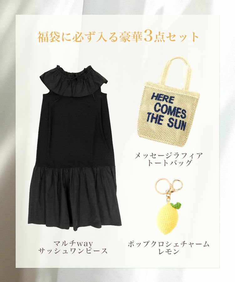 ハッピーバッグとかあまり購入しないのですが、DONOBANさんは信用しているので、冬に続き購入させていただきました! ホワイトワンピは161㎝でいい感じに着れました。付け衿で二の腕をさりげなくカバーできるのも良きです。 レモンチャーム付きバッグは夏にぴったりで、娘がかわいい!って言ってくれました♡ 同梱のトップスとアクセサリーは、持っていないけど気になっていた商品たちだったので、まるで私の好みを分かってもらっているかのようで嬉しすぎました😍 まさにハッピーなバッグありがとうございました❤️