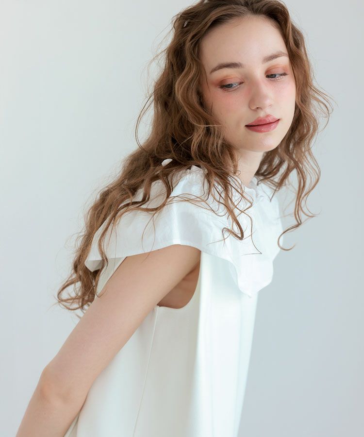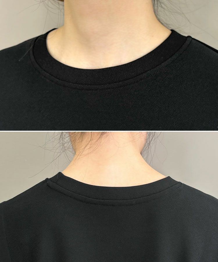 ボディ部分は、程よくストレッチがありボディラインを拾いにくくし、低身長の方から高身長の方も着れる丈感に拘りました。