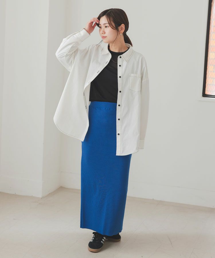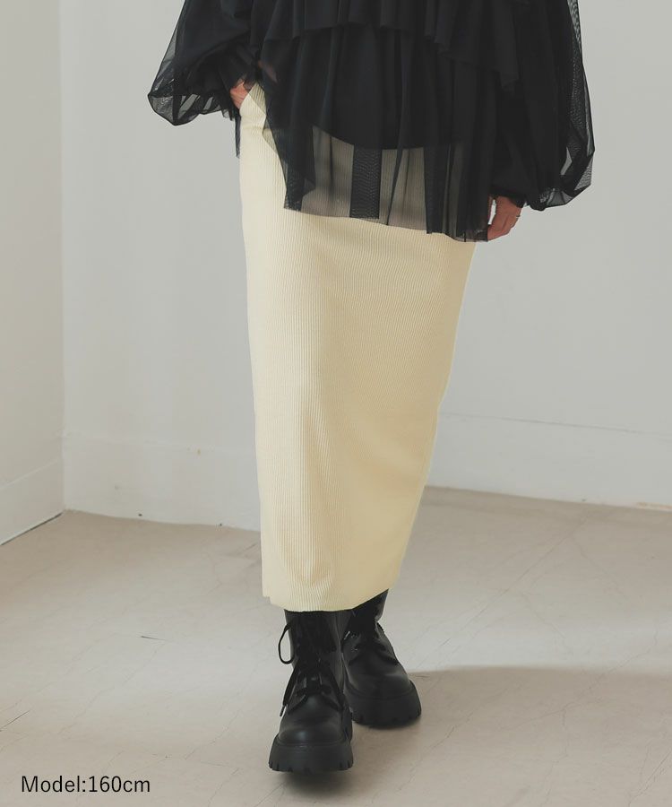 セルフカットで裾をお好みの長さにカットして着用が可能なタイトスカート。