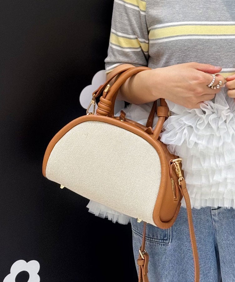 ブラウンもブラックと同様にキャンバス部分をベージュ×ホワイトのミックスしたコンビネーション生地を使用しているのでナチュラルでも上質感のある雰囲気が出せます。