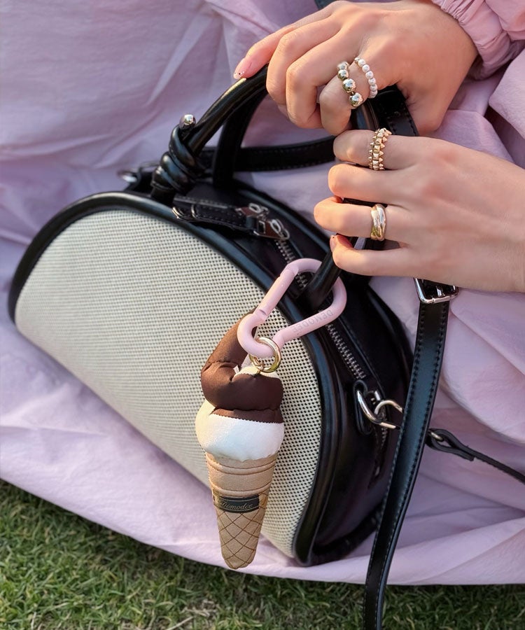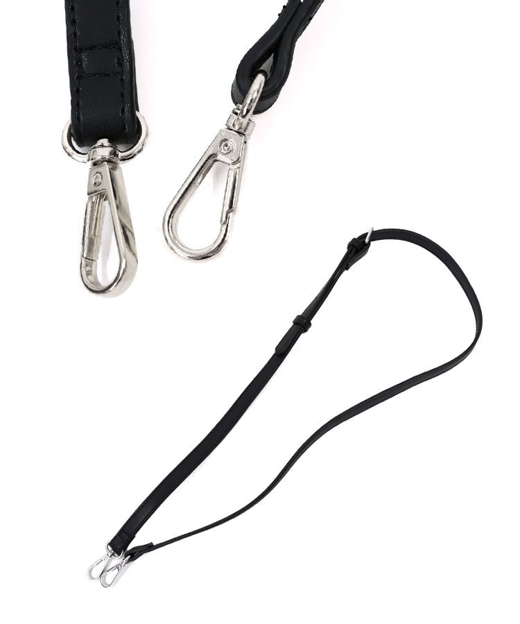 ショルダー使いにした時、ハンドル部分が開き過ぎないようにスナップを付け、遊び心もプラスするために同じレザーのカラーと金具でアクセントも付けました。 斜め掛けでも大きくなりすぎないようなベストサイジングになっており、両手が空くのでお子さま連れの方の強い味方です。