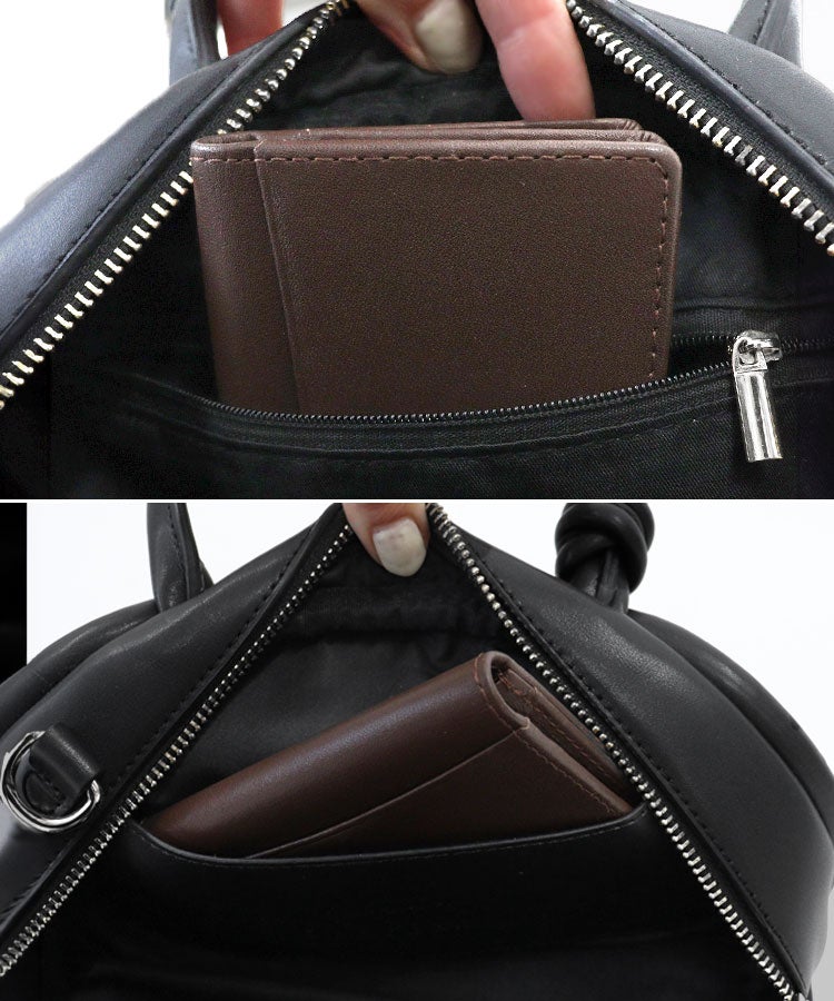コンパクトな見た目ながらも長財布や600mlのペットボトルも安心して収納でき、内側にはジップ付きのポケット、オープンポケットと2つ付け外側にもオープンポケットと抜群の収納力。