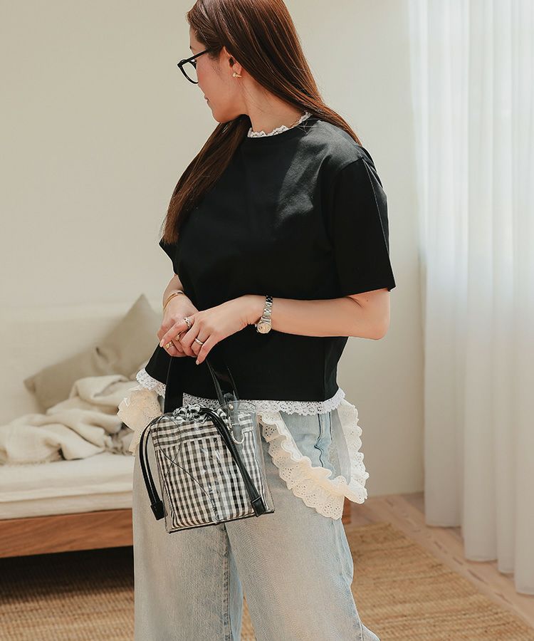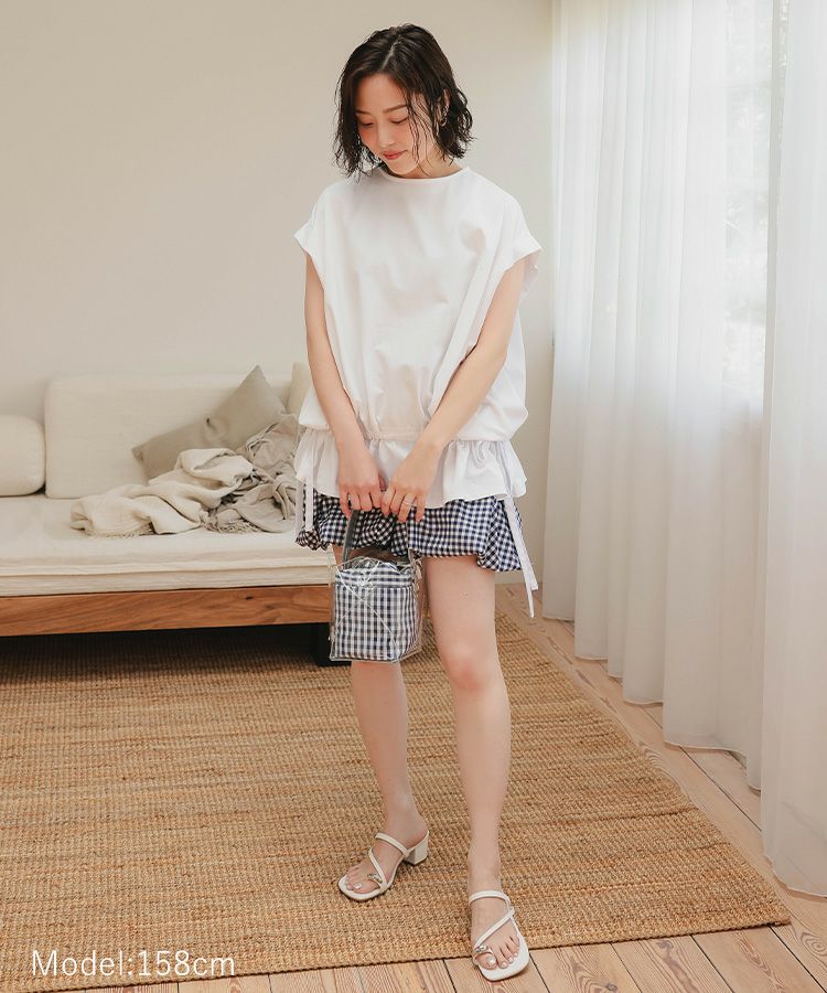 ギンガムチェックを組み合わせたのでコーディネートのポイントにも。