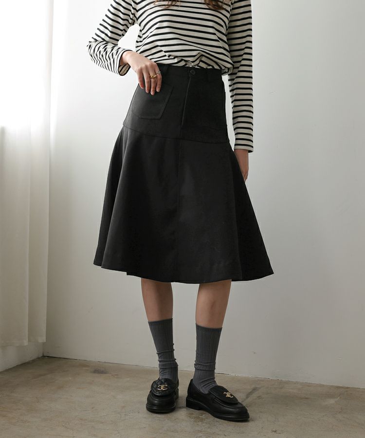 たっぷり広がる贅沢なフレアシルエットは動くたびに揺れ感が出て、スタイルを華やかに演出。