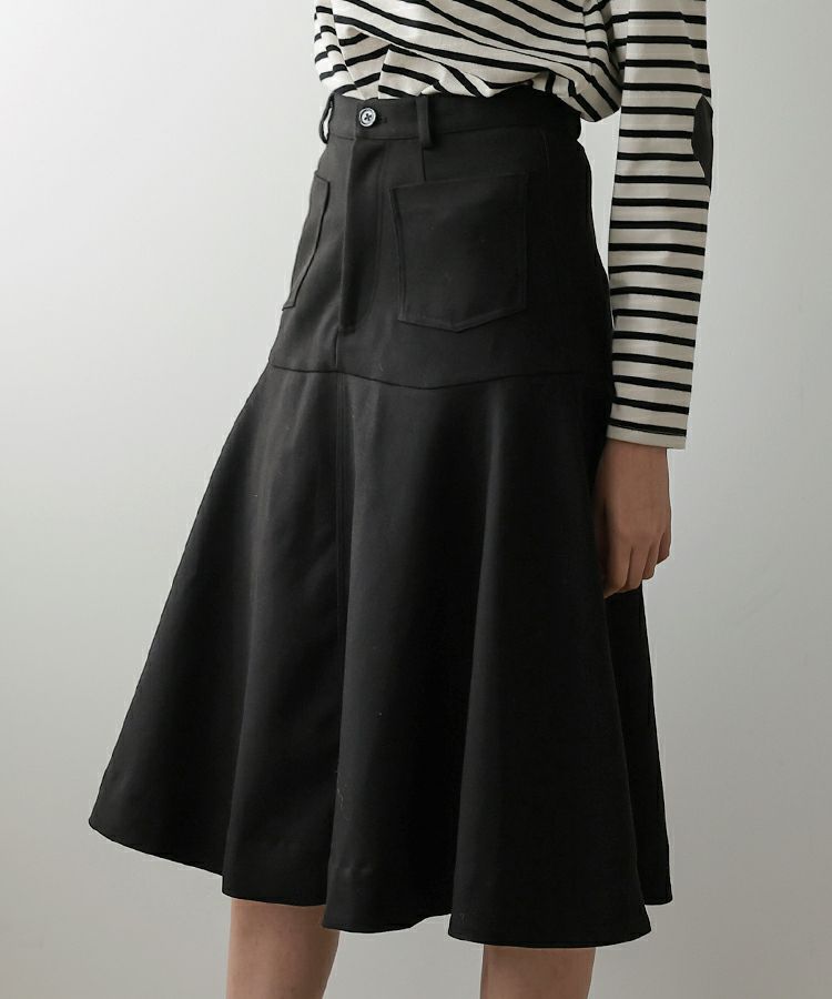 たっぷり広がる贅沢なフレアシルエットは動くたびに揺れ感が出て、スタイルを華やかに演出。