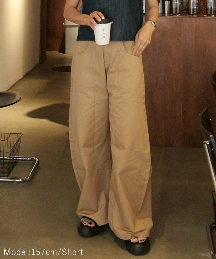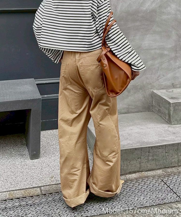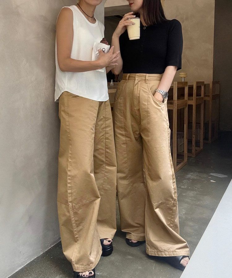 ボトムはお気に入りのコラボパンツにゆるめのシルエットで、全体にカジュアルフェミニンでリラックススタイルに◎