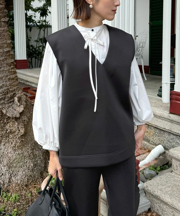 深Vネックがカジュアルで、両サイドにはスリットも入っているのでレイヤードしやすいアイテムです。
