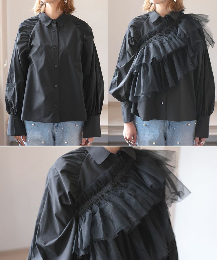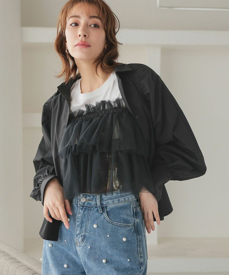 ブラウスとセットのチュールサッシュはマルチwayで使える便利なアイテム。 真夏はTシャツにも合わせて着回したい。