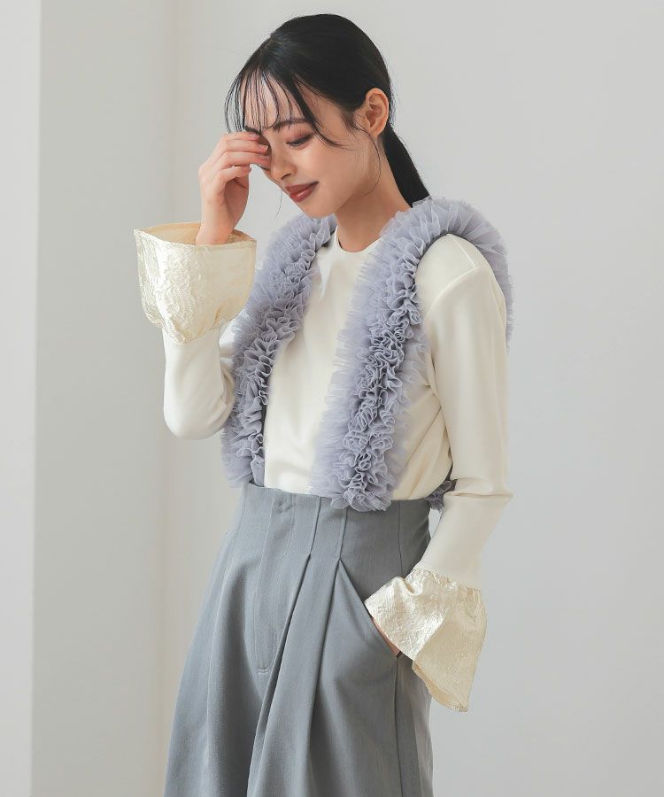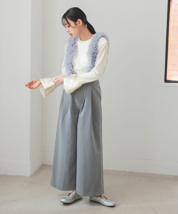 綺麗なラインのワイドパンツにセットのフリルサスペンダーが可愛すぎる!サスペンダーなしでも着用出来るので着回し力は抜群です!お袖がかわいいトップスも暑くなるまでたくさん活用して頂けます!!