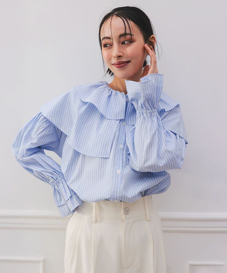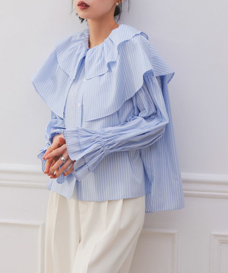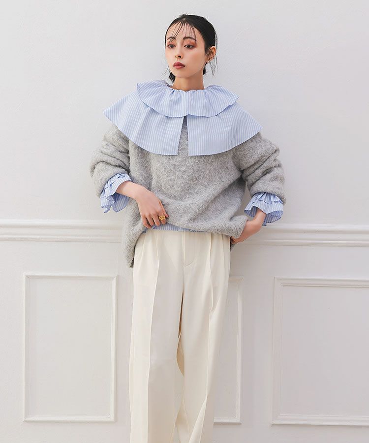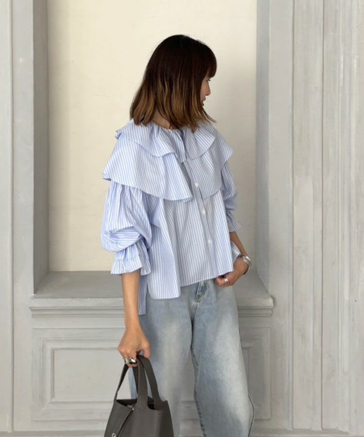 ストライプシャツが春コーデの気分♪寒い日は、中にタートルINで今から着れちゃう。スウェット合わせでカジュアルダウンするのが今の気分。