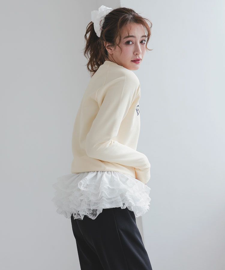 路面ポップアップで見て一目惚れ♡ スウェットなのにコンパクトなサイズ感が気に入りました! 一緒にオーダーしたバレリーナトップスの付け裾のフリルを合わせると雰囲気が変わってまた可愛いです!! セットのシュシュもコットンレースでボリュームのあるデザインが大人可愛いです♡