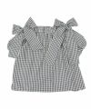 甘めのチェックのトップスにデニムを合わせることで甘すぎないカジュアルなコーデにしました。シャツはリボンで調節可能ですが、中にゴムも入っているのでズレにくく、肌見せを楽しむことができます。