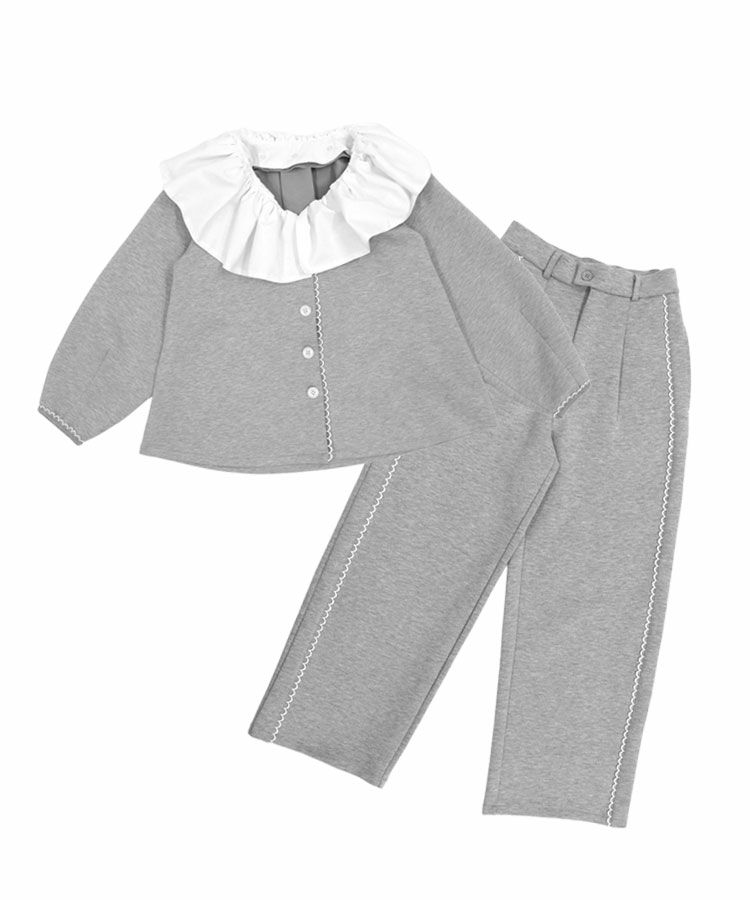 レースの華やかさにグレーの落ち着きが◎、上品で甘さ控えめの大人フェミニンに。低身長さんでも着られている感が出ない絶妙な丈感が◎