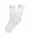 履き口前側にビジューとパールを装飾した目を惹くクルーソックス。
