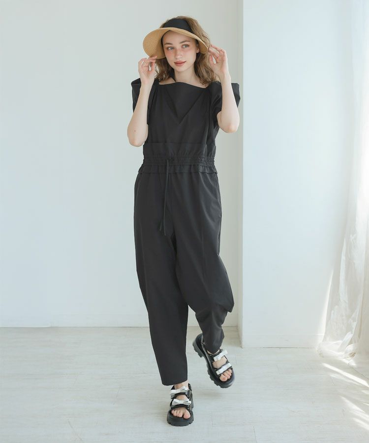 肩の位置を変えて着れる2way仕様のオールインワン。