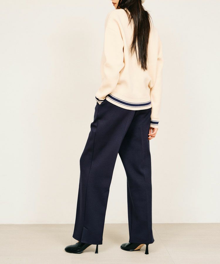 裾と袖口にボーダーリブデザイン入り。