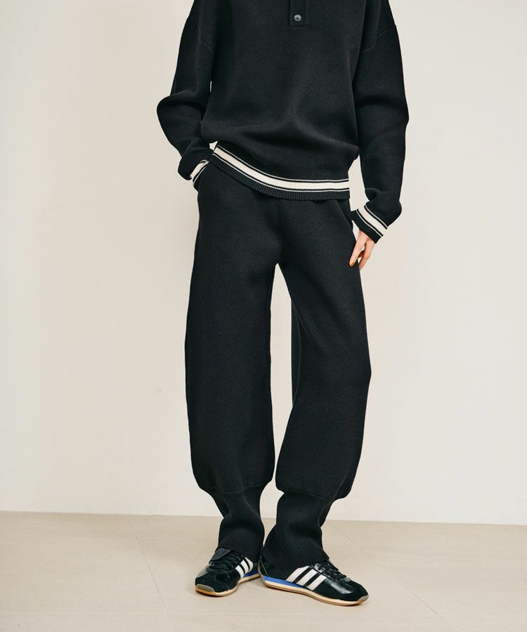 シルエットは少し太めで裾のリブ範囲を広めに作っているのでシンプルだけどデザイン制のある飽きの無いニットパンツです。