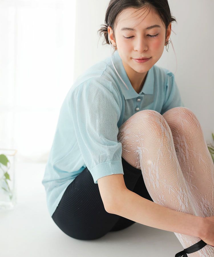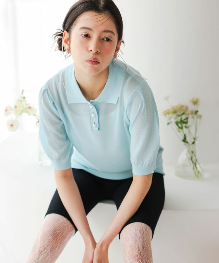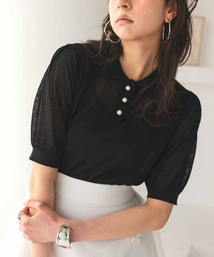 涼しげなシアー感のある、サマーニットのポロデザインがトレンド感ある1枚。