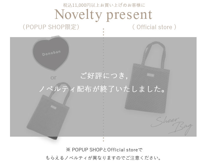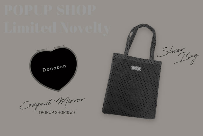 POPUP SHOPにて11,000円(税込)以上ご購入の方に 選べるノベルティプレゼント! 『オリジナルハートコンパクトミラー』 もしくは 『シアードットトートバッグ』 どちらかお好きな方をお選びいただけます。 ※オリジナルハートコンパクトミラーはPOPUP SHOP限定となります。 ※どちらも十分な数をご用意しておりますが品切れの際はご容赦くださいませ。