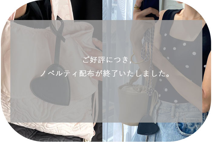 Official Storeにて14,300円(税込)以上ご購入の方に 『ハートチャーム』の「BLACK」をプレゼント ※十分な数をご用意しておりますが品切れの際はご容赦くださいませ。 ※ご注文の際にノベルティクーポンをご利用ください。
