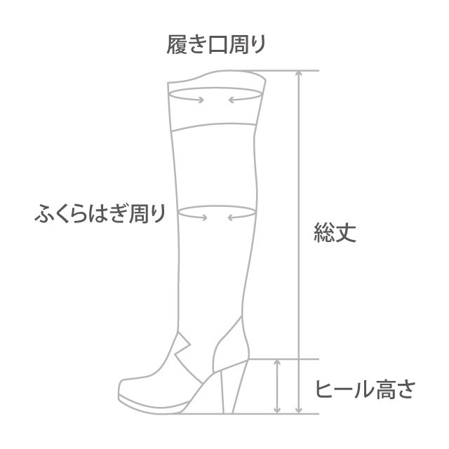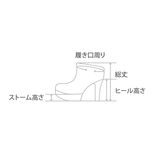 履き口の端からヒール(ソール)の先端までを計測しています。