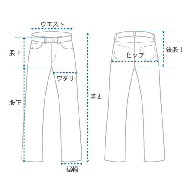 股下(レングス)股の十字の縫製部分から内股の縫製にそって計測しています。
