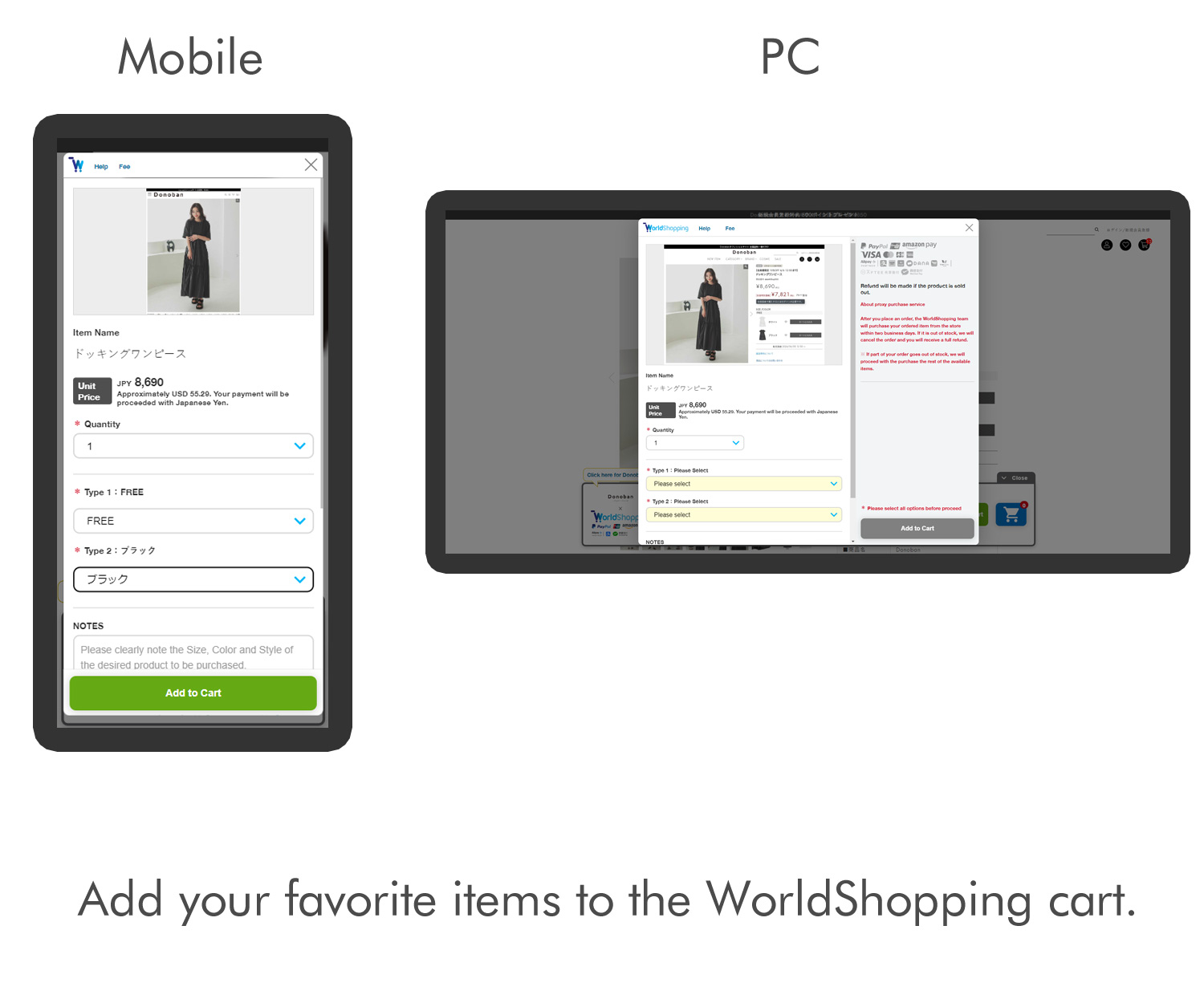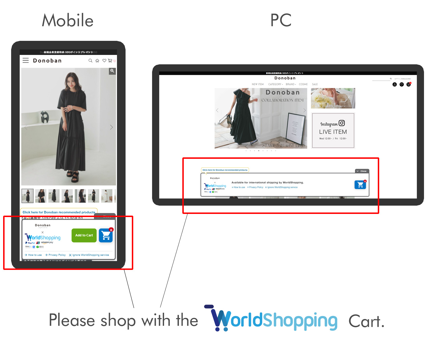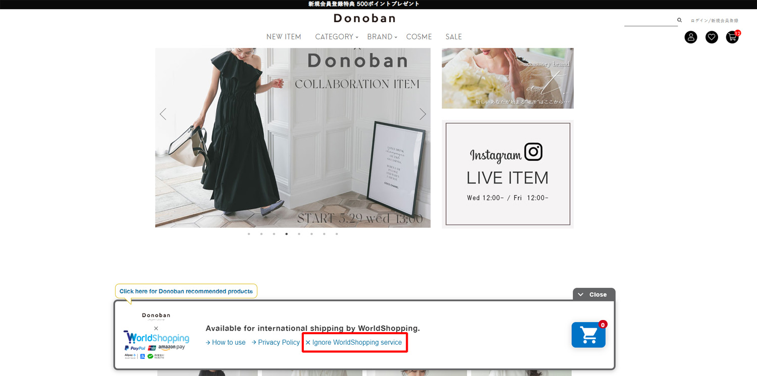 If the shipping address is within Japan, click the “ignore WorldShopping service” on the banner to make the banner gray, and then you can use the normal shopping cart.