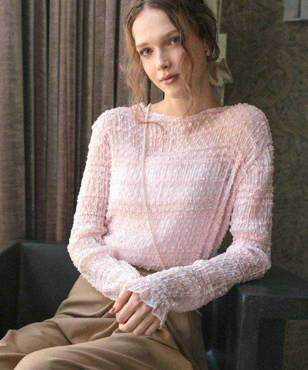 身体のラインが出ないのに透け感もあり、何にでも合わせやすいです。