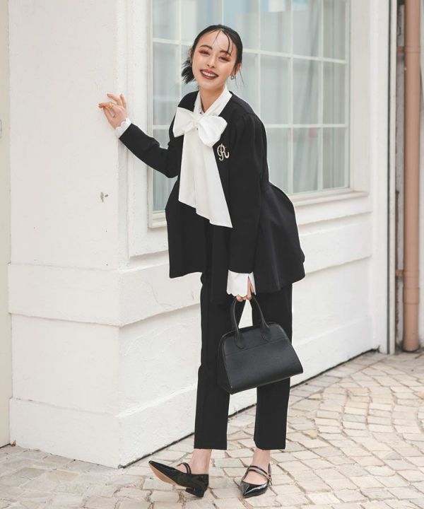 卒園式用に買いました。トレンドを押さえたセットアップで、上下ともに美しいラインです。パンツもスムーズに動きやすくて感動です。モデルさんと同じように、パールブローチも一緒に買いました。身長152cmで、普段SやMを着ていますがショートだけで大丈夫でした!セットアップは便利なので、ホワイト系のセットアップも、あったら買いたいです。